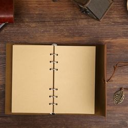 Made of high quality PU leather, soft in hands, durable for travel or outdoor adventure. Loose-leaf design makes it more practical. With 80Pages 100gsm kraft Paper. Perfect size for handbag and schoolbag; Built-in small binder help you add refills planner, calender pages easily. Take out or in paper easily so that you can record any instant memory no mater where and when you are. It could be used as a traveler's notebook, journal, logbook, memo pad, or for diary, etc. Custom LOGO is available.